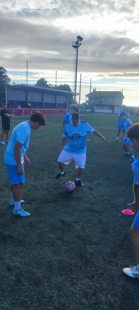 Tras varias sesiones de convivencia, nuestros usuarios ya se integran con las tareas habituales del equipo juvenil de la Escuela Deportiva Arousa.